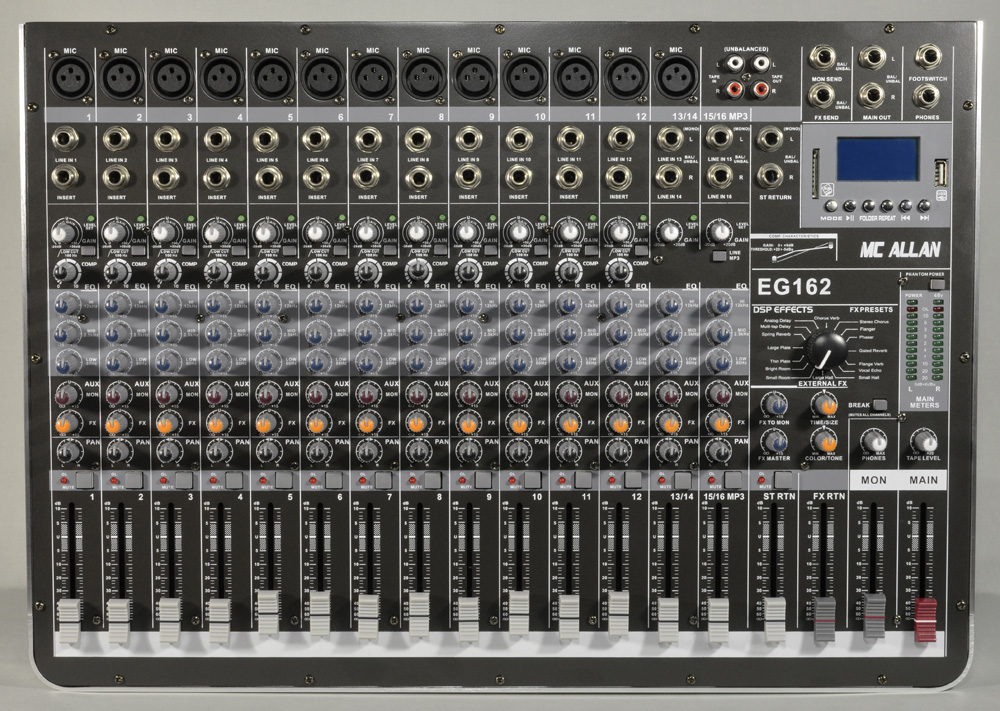 - Adjustable gain, compression, high-mid-low tones, monitor level, effect and pan
